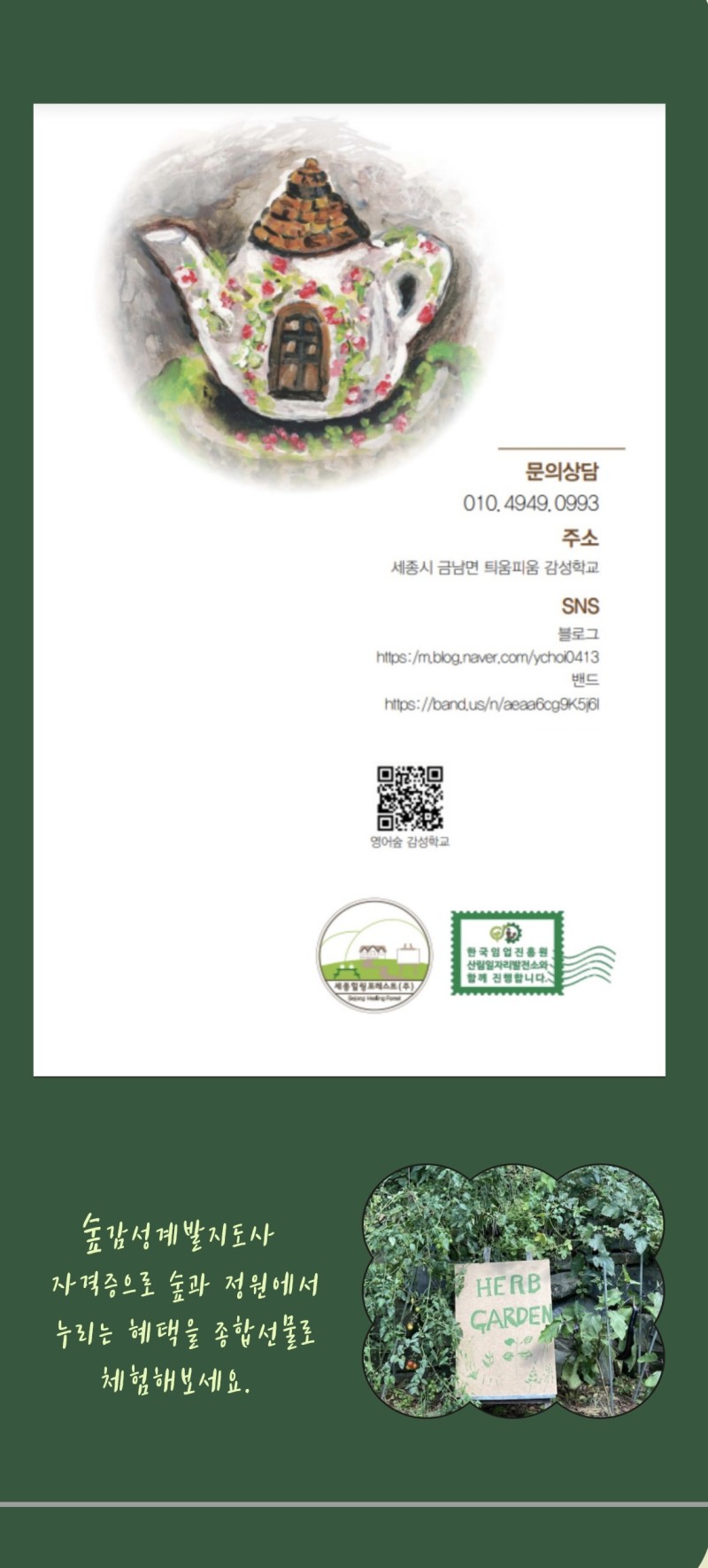 세종힐링포레스트 : 숲감성계발지도사 자격증 안내 페이지 정보 작성자 세종힐링포레스트 댓글 0건 조회 334회 작성일 24-09-20 22:34 목록 본문 #가정치유 #자녀치유 #가족치유 #가족도치유하고엄마도사는#경력단절녀 이전글세종힐링포레스트 프로그램 소개 24.09.28 다음글세종힐링포레스트 티 톡 테이블 신청 24.09.20
